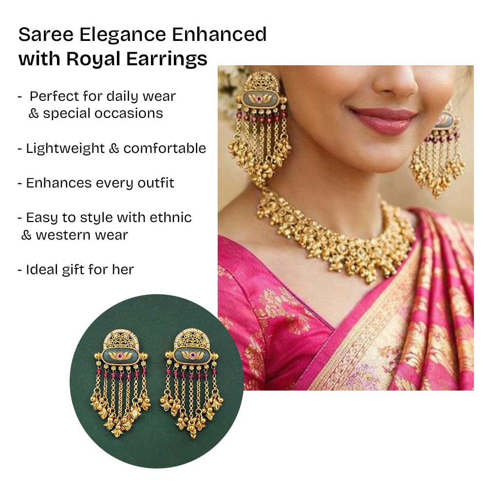 Antique Moti Earring With Matte Gold Plating Antique Moti Matte Gold Earring With Gold Plating