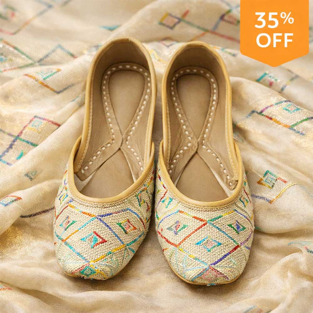 Ivory Multicolor Handcrafted Traditional Juti